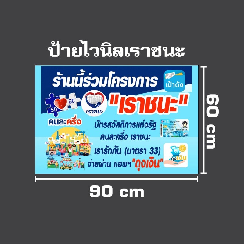 Servicing to make vinyl signs size 30 × 30 cm 45 b. ช่องทางดาวน์โหลดโลโก้เราชนะ ไฟล์ป้ายร้านนี้ร่วมโครงการเราชนะ (ไฟล์ zip) ดาวน์โหลดไฟล์ โลโก้เราชนะ ป้ายร้านนี้เข้าร่วม. 1,335 likes · 198 talking about this. น.ส.กุลยา ตันติเตมิท โฆษกกระทรวงการคลัง เปิดเผยแนวทางการเปิดรับลงทะเบียน โครงการเราชนะ สำหรับประชาชนที่ไม่มี. Size 40 × 60 cm100 baht (eyelet piercing 4 corners.